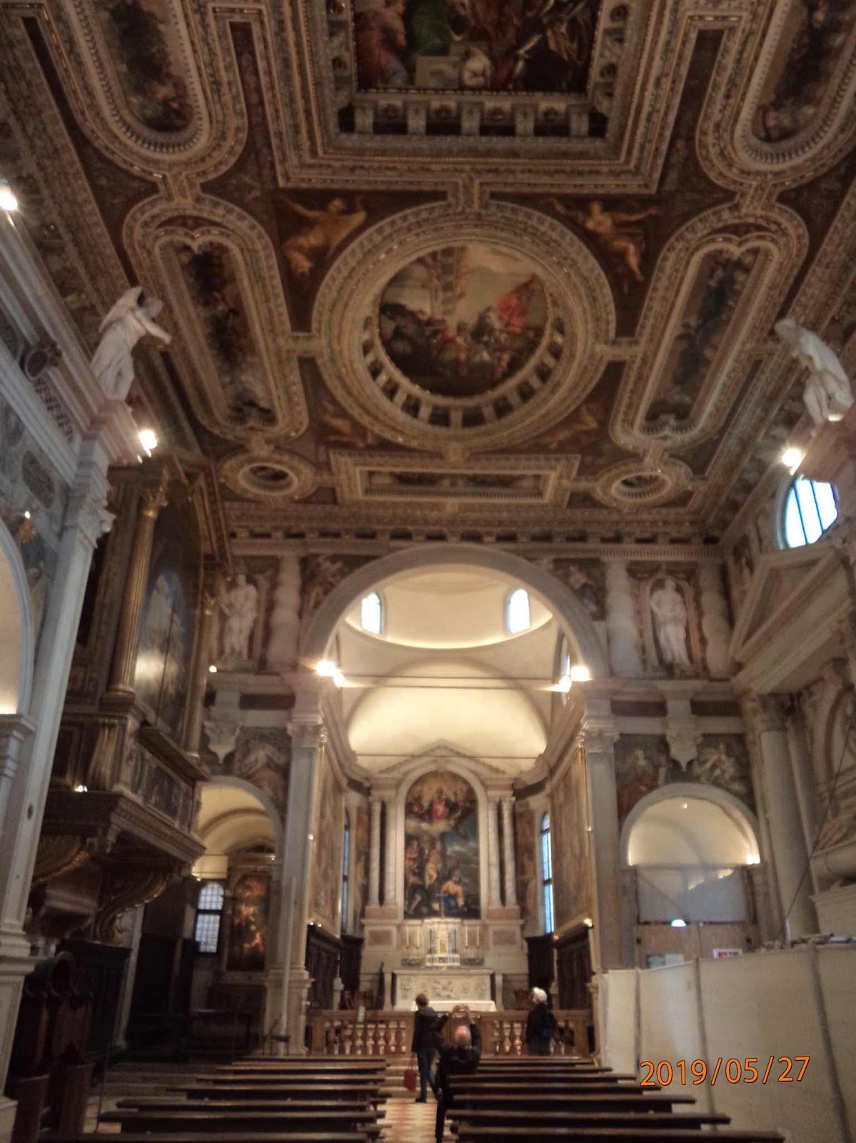 This isn’t my photo I’m afraid. I did take one from this position, but the church is housing some works from the Biennale and there is a tall multi coloured glass erection, filling the centre of the nave almost to the roof, so it’s impossible to photograph the interior without it.