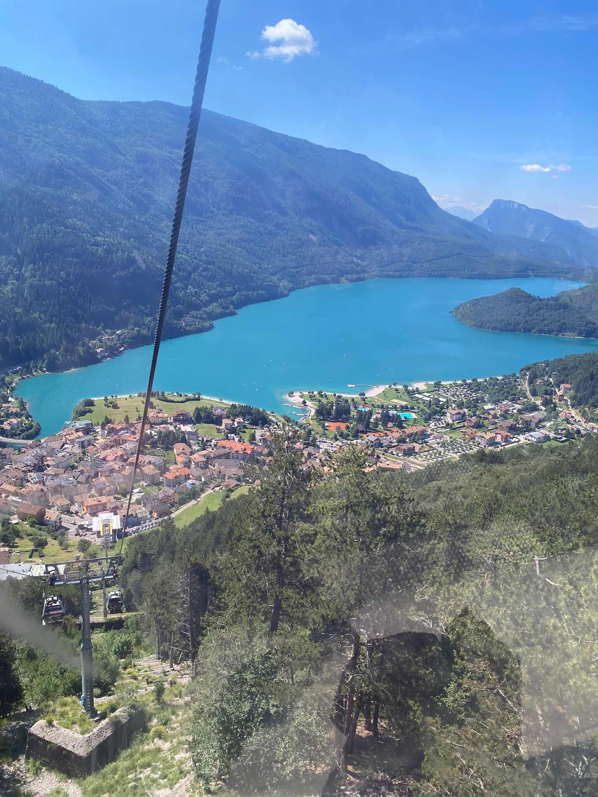 Once off the ski lift, we walked in the pine forest for a while, along a little track called the bear trail. The forest was thick and cool and the slopes on both sides of the track were steep. There were no views to photograph and no bears, fortunately. Eventually, we made our way back to the Telecabine and came back down to Molveno. It was fiercely hot again and we stumbled back down the hill to the hotel where we fell on the bed, and, in my case, fell asleep for the afternoon.